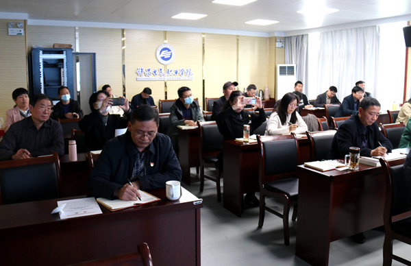 彭占亭强调,党史学习教育是贯穿今年全年的一项重大政治任务,任务艰巨、使命光荣,要求全院各单位要以高度的政治觉悟、昂扬的精神状态组织开展好党史学习教育。一要坚持学史明理,强化理论武装。要树牢唯物史观,强化理论思维、历史思维,认真学习贯彻习近平新时代中国特色社会主义思想,深刻理解重大意义、精神实质、丰富内涵、实践要求,真正做到用党的创新理论成果武装头脑、指导实践、推动工作。二要坚持学史增信,筑牢信仰之基。我们要不断深化对人类社会发展规律的认识,深刻认识共产主义的真理性和必然性,深刻认识中国特色社会主义是历史的选择、人民的选择,把共产主义远大理想与中国特色社会主义共同理想统一起来,始终坚守共产党人的理想信念和执着追求,矢志不渝为实现共产主义奋斗终身。三要坚持学史崇德,永葆政治本色。共产党人要明大德、守公徳、严私德,不断加强党性锤炼,砥砺政治品格,知敬畏、存戒惧、守底线,牢记党的宗旨、党纪国法。四要坚持学史力行,做到以行践知。要保持奋斗姿态。始终牢记自己的第一身份是共产党员,第一职责是为党工作,保持只争朝夕、奋发有为的奋斗姿态和越是艰险越向前的斗争精神,在其位、谋其政、干其事,团结带领全院干部师生,不断开创学院各项事业新局面。