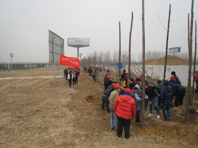2014年3月12日,是今年的植树节,为贯彻团市委2014年工作精神,培养青年学生“爱护环境,从我做起”的良好品质,许昌电气职业学院组织中高职团委会的青年志愿者们,到永昌大道路两旁,开展义务植树活动。