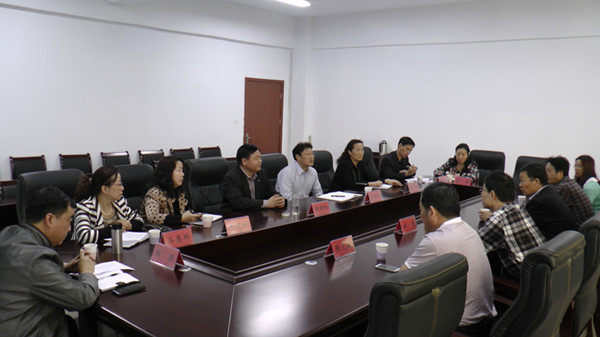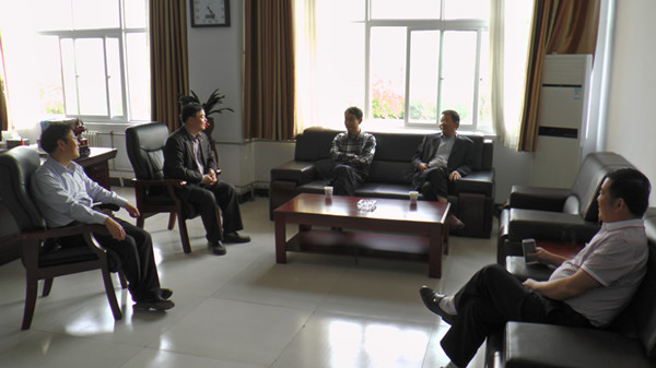 图为许昌学院领导与我院领导交流两校协同发展问题