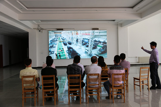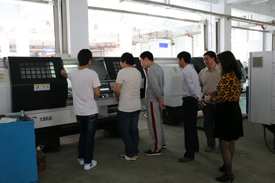 在办公楼大厅,刘校长一行观看了学院专题片,随后,参观了我院实训车间、图书馆和会议中心。