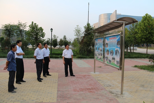 随后,院领导一行又视察学院宣传栏和学院正门广场。在宣传牌前,苏书记特别强调:“一定要组建一支强有力的专业宣传队伍,利用好学院的网站、宣传栏和其它媒体,真正把学院里全省有名的特色专业宣传出去,把学院精彩纷呈的校园活动宣传出去”。在学院喷泉景观带旁,院领导指出,校园景观带是学校一道靓丽的风景线,一定要很好地展现出来。对于校园二期工程收尾工作,杨院长提出了明确要求,既要保证建设进度,又要确保工程质量。