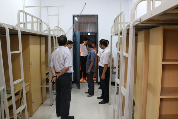 接下来,苏书记、杨院长一行来到了新改造升级的学生公寓。针对公寓内个别地方存在的卫生死角问题,苏书记、杨院长要求马上整改、立即落实,切实保证学生公寓的卫生及安全保障工作。