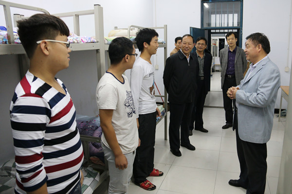 9月16日晚,学院党委书记苏建涛、院长杨德岭来到学生宿舍与学生亲切交流,深入了解他们的学习和生活情况。党办、院办负责人陪同看望。