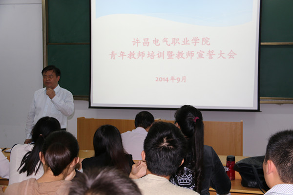 9月29日下午4点30分,我院在教学楼多媒体教室举行青年教师培训暨教师宣誓大会。学院院长杨德岭、学院人事处负责人郭红军、教务处负责人潘俊峰、学生处负责人张慧敏及学院58名青年教师出席了此次会议。