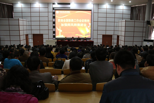 11月7日下午,学院在教学楼西侧阶梯教室召开“贯彻职教会议精神,加强师德师风建设”全体教职工大会。学院院长杨德岭同志主持会议,学院党委书记苏建涛同志作重要讲话。
