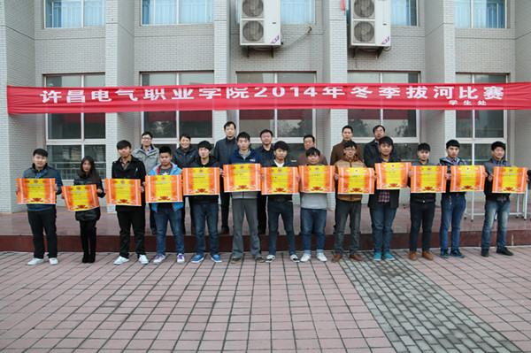 我院2014年冬季拔河比赛于12月3日下午圆满落幕。本次比赛共有五个系、52支代表队参赛,经过6天、53场的激烈角逐,最终2013级机电一体化班和2012级数控车铣班分别获得高职组和中职组的冠军。比赛结束后,举行了颁奖仪式,院长杨德岭为获胜的代表队颁发了奖状和奖品。