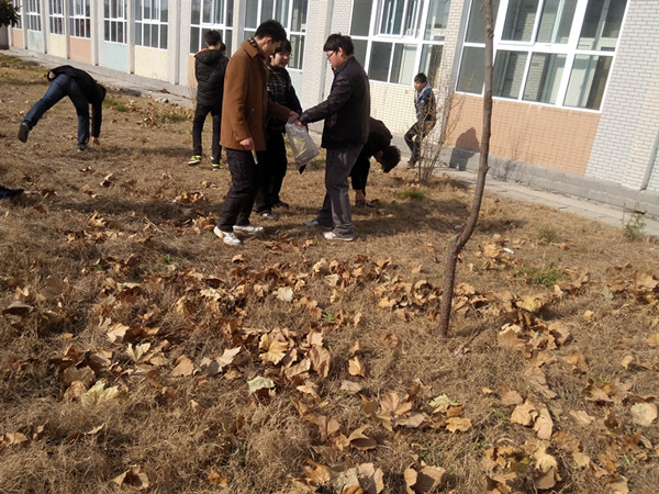 13级电气机电五年制班班主任张赛老师,14汽修黄聪老师,14数控车钳李艳老师,13电工电子1班滕俊杰老师等带领学生利用课余时间,主动到学院广场、草坪 、宿舍楼外等地进行义务劳动。学生们劳动热情高涨,不放过每一张纸片,每一个垃圾袋,并表示要将这样的公益活动坚持下去,在奉献中升华人格魅力,在服务中实现人生价值。