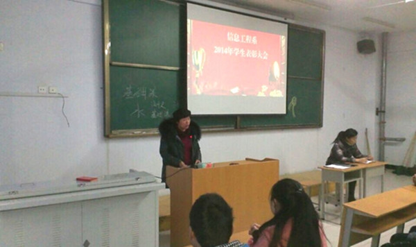 12月25日,正值圣诞佳节,信息工程系全体师生在多媒体310 隆重集会,召开2014年度信息工程系学院奖学金和助学金表彰大会,大会由王旭主持,信息工程系负责人陈晓红、郭赟出席会议。全系专兼职教师、学院奖学金、助学金获得者和所有学生参加了大会。