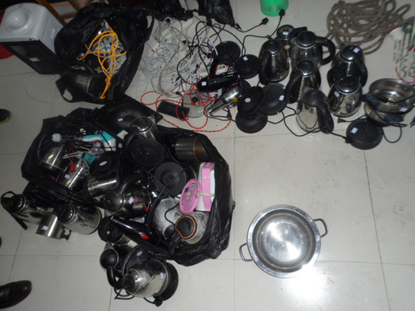本次检查主要是检查同学中是否有违禁物品、在寝室内使用电炉、热的快、电茶壶、电热毯等大功率违规电器。依据分工检查人员分组认真对每个宿舍进行了检查,发现寝室私拉乱扯电线情况虽比以前有所好转,但违规使用大功率电器的现象仍比较严重。检查中检查组成员对违规使用的大功率电器现场进行了收缴(共计76件),并向同学们讲述了近年来大学校园里由于违规使用大功率电器、私拉乱扯电线而引发的火灾案例,希望同学们提高安全防范意识,消除安全隐患。