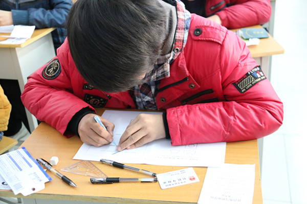 制图考试中学生在认真答题