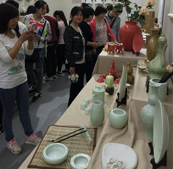 本次展览是从近1000件(套)各类参赛作品中筛选出的优秀作品。展出作品多以三国文化为主题,结合许昌钧瓷文化、生态文化、建筑文化、餐饮文化、民俗文化等进行创新,涵盖了创意包装设计、广告艺术设计、环境艺术设计、钧瓷艺术设计、企业形象设计、动漫周边产品开发等多种艺术类型。这些作品立足许昌特色文化,文化底蕴深厚,创意设计独特,传统文化魅力与现代审美眼光相结合,部分作品已经达到投放市场进行深度开发利用的水准。在观展的过程中,老师与同学们兴致盎然并不时提出问题和想法见解,对作品的欣赏也更深一层。尤其是从设计的细节观察到作品背后设计师对生活、对文化的深厚积累和深植许昌大地三国文化的深度发掘,从中颇受启发。