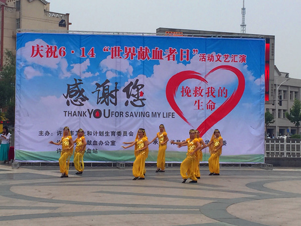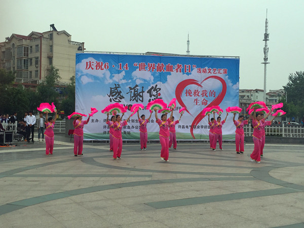为迎接“6.14世界献血日”,宣传和促进全球血液安全规划实施,普及献血知识,鼓励更多的人加入到无偿献血中来,5月17日上午,院团委和许昌市中心血站联合举办“感谢你挽救我的生命”大型广场文艺系列汇演在文峰广场拉开序幕。
