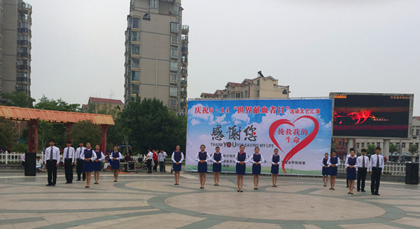 “感谢你挽救我的生命”大型广场文艺汇演于上午8:30准时开始。参演的节目有舞蹈,手语,萨克斯、相声等,我院学生青春富有朝气的演出引来许多行人驻足观看,精彩节目引得台下观众阵阵掌声,连连称赞,首场文艺汇演取得圆满成功。