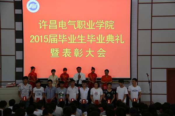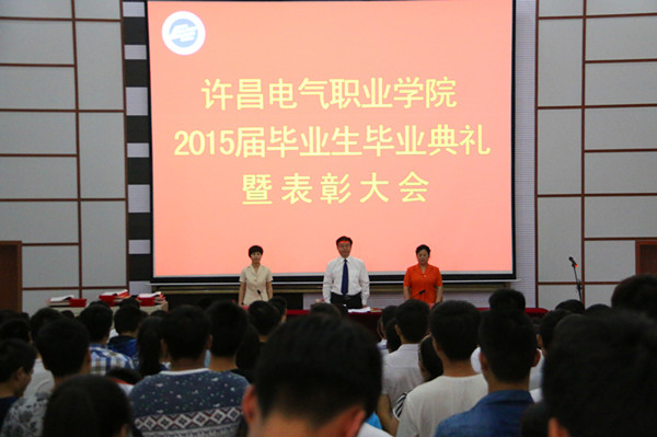 典礼上,院长杨德岭发表了热情洋溢的致辞。致辞中,杨院长首先代表学院向顺利完成学业2015届毕业生表示祝贺,向辛勤哺育学生成长的家长、悉心指导学生成才的教师及关心学院发展社会各界朋友表示感谢。他指出,大学是学生成长成才的家园和平台,几年来,同学们以许电院为家,苦学专业、勤练技能,与母校风雨同舟,共同成长,在这里度过了人生中最灿烂的青春年华。学院的发展凝聚着每一位老师和同学的心血和汗水,得益于学院全体师生的拼搏与努力。他指出,大学生活虽然短暂但却弥足珍贵,希望大家珍惜母校情、同窗情和师生情。临别之际,他希望2015届毕业生:一要面对现实,尽快在新的工作岗位上找准位置;二要甘于平凡,努力从一点一滴的小事做起;三要戒骄戒躁,矢志不渝奔向光辉的明天;四要勿忘母校,做母校热心、忠诚的校友。最后,他祝愿各位毕业生在人生的下一站更加精彩,用任性的技艺演绎出锦绣前程。