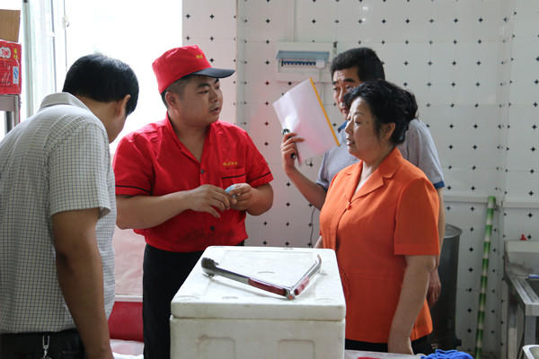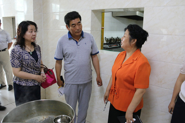 徐书记对食堂工作场所卫生状况、食品的卫生等进行了严格检查,还与食堂工作人员交谈,详细询问、了解食堂各类食品及原料的定点采购情况、货物存储情况、及制作售卖各个环节。