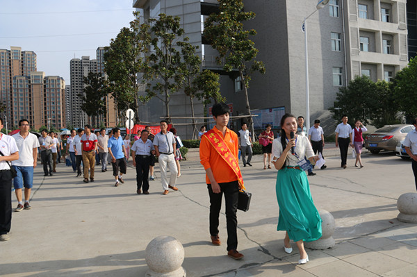 在讲解员带领下,推介会与会代表参观校园