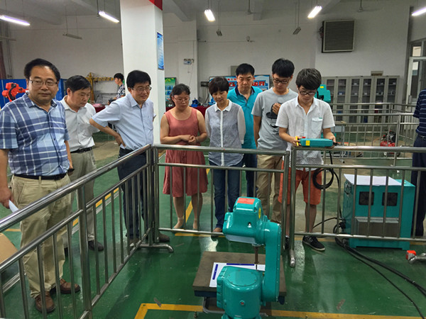 商淑敏一行来到新乡职业技术学院,受到该院副院长赵金周及相关部门负责人的热情接待。在赵金周的陪同下,商淑敏一行参观了校内实训基地的电子、数控等专业实训室,观看了机器人现场表演和航海专业海船驾驶仿真实训。每到一处,商淑敏都饶有兴趣地询问了设备功能及实训开展等情况,并对该院先进的实训设备及科学的管理理念表示赞赏。