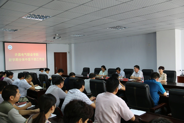 会上,院长杨德岭发表了题为《认清形式,把握大局,振奋精神,推动学院工作再迈新台阶》的重要讲话,对新学期的工作提出了具体要求。并强调指出,一要提振信心,乘势而上。今年学院招生形势明显好转,取得初步成效,仍要继续努力加大招生宣传,扩大招生规模,合作办学深入推进,启发新思维。今年要提前做好新专业的论证准备工作。二是要把握大局,抢抓机遇。国家、省、市人民政府不断出台关于高等职业教育的利好政策,有力促进了高等职业教育的发展和繁荣,为学院发展提供了强有力的政策支撑和发展机遇。三是要提高素质,迎接挑战。基于面临新形势,干部队伍素质要不断提高,进一步强化担当意识,做好“主攻手”,强化大局意识,当好“二传手”, 强化规矩意识,用好“护身符”。