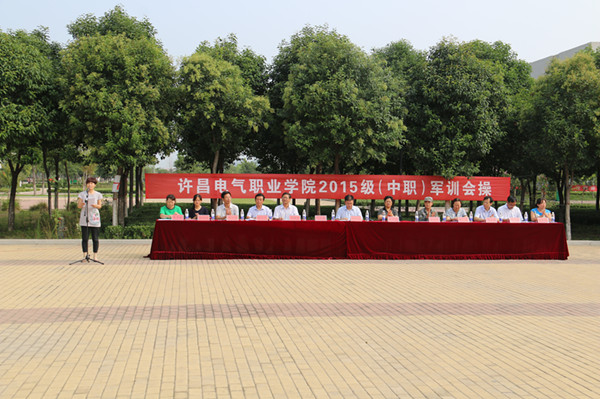 为检验新生们军训成果,展现我院学生良好的精神风貌,学院于2015年9月2日举行了2015级中职新生军训会操比赛。学院院长杨德岭、纪委书记徐翠琴、副院长商淑敏、中国人民解放军20军58旅带队教官安潇波,以及相关部门负责人出席了军训会操,副院长商淑敏主持本次会操比赛。