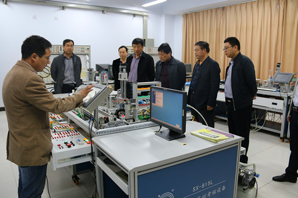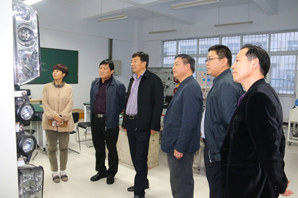 张荣瑞处长一行参观了学院的校容校貌,对学院的规划布局、建筑风格、校园环境等给予赞赏;又实地考察了学院第一实训中心的汽车发动机拆装维修中心、整套汽车装配平台和液压与气动调试中心等。每到一处,他们都认真听取了专业教师的详细汇报。考察组一行一路走,一路看,一路议。 “这样大实训中心,这么先进的实训平台,在全省同类院校中都是领先的,屈指可数的!”这是张荣瑞处长一行说的最多的一句话。