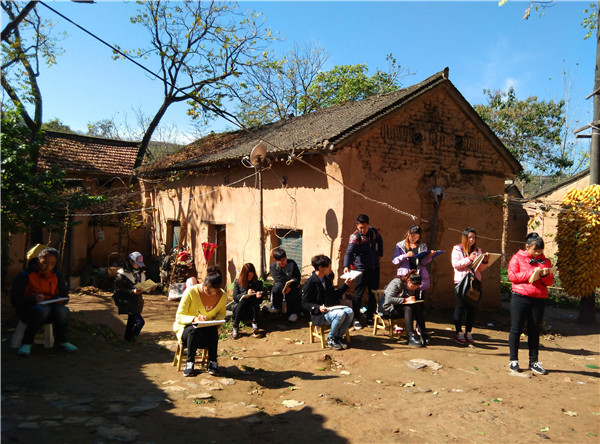 为提高学生的专业水平与艺术素养,在学院领导的大力支持下,2015年10月26日,我院艺术系组织2014级工业设计学生前往洛宁县下峪乡开展为期七天的实景采风和写生活动。