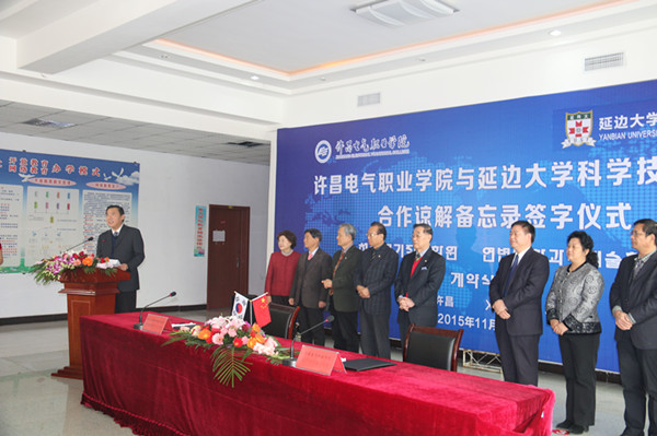 杨书记强调,我院将依托学院学科优势、办学优势,以只争朝夕的精神,善做善成的作风,致力于学院特色化发展、跨越式发展、科学化发展;致力于强强联合,实现学生、学校的多方共同发展。他指出,我院与延边大学科学技术学院缔结姊妹学校关系后,双方将围绕外语教育、商务或贸易、经营者的培养及尖端科学技术等方向开展联合办学。设立YUST社会教育院许昌分院,在双方共同运营和管理下,开展以就业和留学为主的外语培训,开设国家认证的相关外语类、经贸类、科学技术类资格考试准备课程,并实施教师与学生的互换。