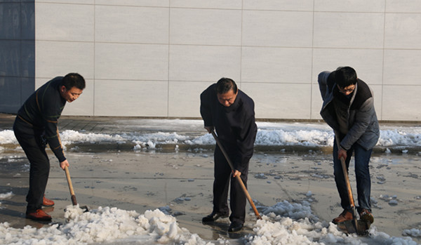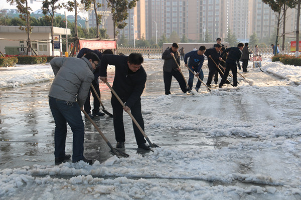 近日,我市普降大雪,大雪在给人们带来欣喜的同时,也给过往师生们出行带来了极大的不便和安全隐患。为保障降雪后校内通行安全和校园环境的整洁,11月25日下午3时,我院党委书记杨鲁西,院长杨德岭等领导身先士卒,带领全体行政人员迎着寒风在行政楼前开始了一场扫雪活动。