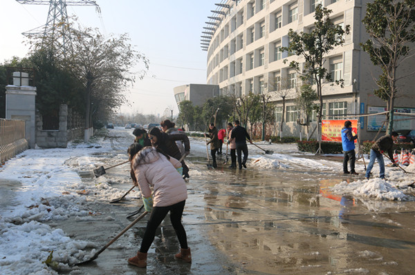 在扫雪过程中,大家发扬了“不嫌脏,不怕累”的优良作风,用实际行动为学院师生的正常出行提供了安全保障。室外依旧寒冷,但是劳动的热情和团结的力量让这个冬日变得格外温暖。