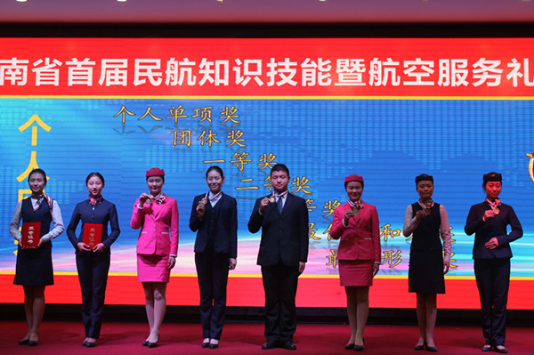 本次大赛共设航空形象展示、才艺展示、个人风采、知识问答、微笑天使五个大模块。我院学生以亲切热情的微笑、扎实的基本功感染了现场的评委和嘉宾,在多个环节中获佳绩。所获奖项有:航空形象展示获得一等奖、最佳辅导老师奖;才艺展示获最佳创意奖;个人风采环节中常丹、张素云分别获得二等奖、三等奖;张潮媛获“微笑天使”荣誉称号。