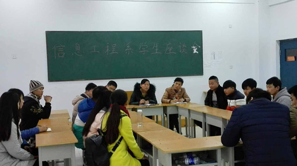 2015年12月7日下午四点,信息工程系在教学楼415教室召开了学生代表座谈会。信息工程系主任陈晓红、郭赟和系部管理老师王旭、任甜甜及来自全系九个班级近20名学生代表参加了此次会议,会议由王旭老师主持。