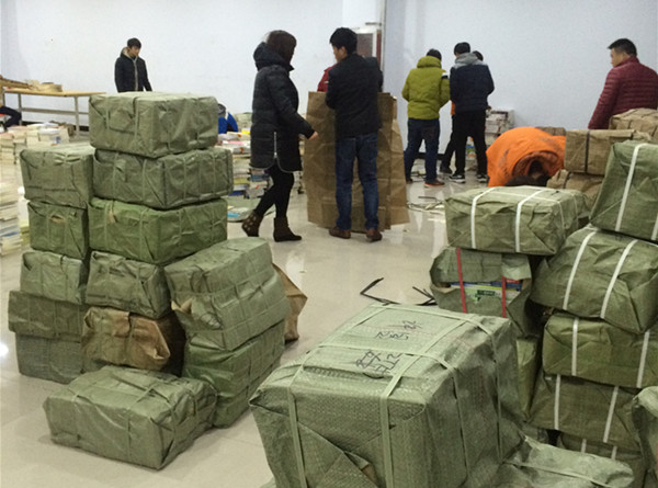 经过大家几天昼夜的辛勤努力,新书拆包、分类、粘贴的工作基本结束,等待下一步进行电脑扫描,最后上架。