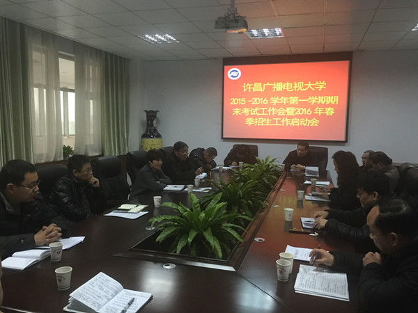 元月5号上午,在学院二楼会议室召开许昌广播电视大学2015-2016学年第一学期期末考试工作会暨2016年春季招生启动会。副院长商淑敏,成人教育部(电大)负责人郭松山、施军,各县(市)电大负责人及成人教育部(电大)全体人员出席会议。