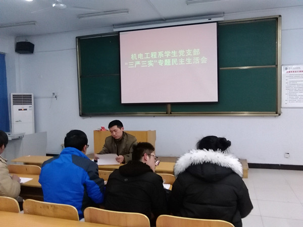 下午4点钟,机电工程系党总支全体党员在教学楼多媒体教室411召开专题组织生活会。在会上,张红凯首先传达了院党委关于认真组织召开“三严三实”专题组织生活会的通知和要求,机电系党总支严格按照方案安排,将本次民主生活会分为教工党支部和学生党支部两个会场。