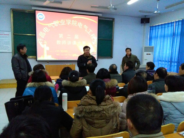 1月22日上午8点,许昌电气职业学院电气工程系第二届教师教学大赛在教学楼210教室举行。电气工程系全体专兼职22位教师参加了此次比赛。院长杨德岭及副院长刘涛、冯朝印莅临指导,院长杨德岭点明了教师基本功对于学院教育的重要性,并对青年教师如何做好课堂教学提出了宝贵意见。本系高级以上教师共6人作为评委认真听取了选手的讲课。本次大赛旨在“激励教学创新,提高教学水平,加强队伍建设”,是对所有参赛教师综合素质的一次全面考核,同时为所有老师提供一个彼此了解、相互学习的平台。