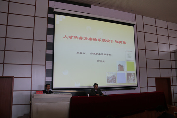 4日,全国高职高专校长联席会常务副会长、中国职业技术学会创业教育委员会主任、宁波职业技术学院院长张慧波教授和宁波职业技术学院质量监控与管理办公室主任何明友副教授分别作了题为《新常态下高职院校治理及教学改革与思考》和《人才培养方案的系统设计与实施》的专题报告。5日至6日,宁波职业技术学院服务外包学院院长周亚副教授、海天学院副院长陈子珍副教授、电信学院院长助理胡克满副教授和公共教学部副主任周碧蓉副教授分别作了题为《高职教育的课程教学改革》《工作过程系统化专业课程体系的设计与实施》《高职课程改革案例介绍--机械制图与CAD》《思修与法律基础课程整体设计》的专题讲座。受邀专家从课程目标定位、整体设计、单元设计等方面系统全面展示了项目化课程设计的思路和方法。六位专家在报告中提出,职业教育教学要关注学生的学习效果,课程设计要充分考虑学生的可持续发展能力培养,突出职业核心能力,提升课堂实效。授课过程中,专家们以宁职院的职教改革历程和经典成果为例,深入浅出,生动形象地讲解了以能力培养为目标的教学改革和以学生为主体的项目化教学设计方案。