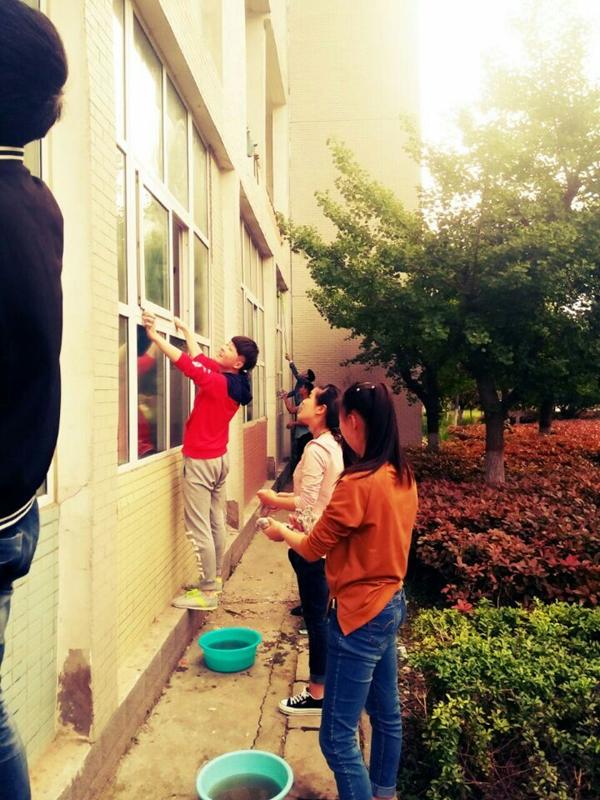 在整个活动的过程中,大家分工合作,擦玻璃、捡垃圾、清理卫生死角,不嫌脏不嫌累。整个活动中充满了欢声笑语,营造了一种欢快的氛围,更体现了大学生青春的活力。