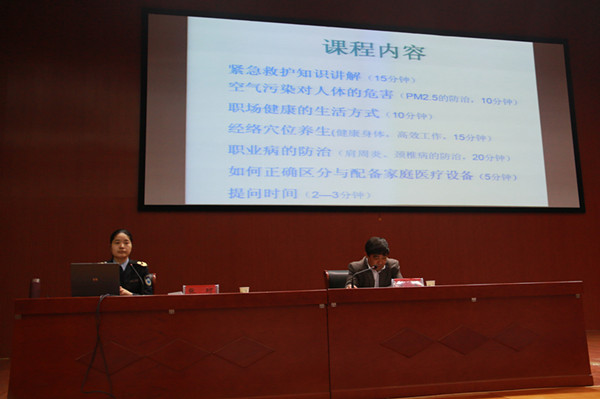 此次《共建安全健康河南》安全知识讲座是由河南省全民健康促进会根据《全民健康素养促进行动规划》(2014—2020)要求,为实施全民健康素养促进行动,贯彻落实公共卫生工作“预防为主”的方针,而发动全省相关专家专门开展的大型公益宣传活动之一。讲座主要结合当前严重的环境污染问题,紧扣人们关心的健康话题,围绕遇到紧急情况和意外事故如何去自救和他救,如何改善亚健康,雾霾的防治以及一些肩周炎、颈椎病、三高病等如何去预防等健康知识,从专业角度展开讲述,目标明确,内容丰富,生动形象并现场邀请了两位老师进行专业演示。讲座现场气氛活跃,互动热烈,对老师们的疑问,张珂老师也给予了详细的解答。