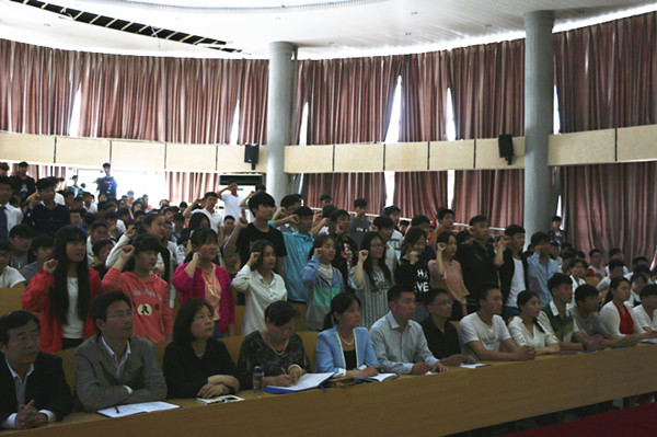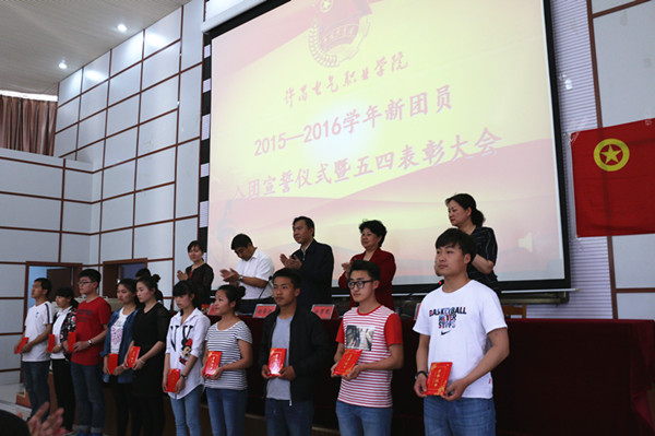5月4日下午,我院隆重举行庆祝五四青年节表彰大会暨新团员入团宣誓仪式。院党委书记杨鲁西, 纪委书记徐翠琴, 工会主席张勇, 院党委委员、组宣部部长张明慧,团委书记杨红培以及各系、团总支负责人出席了大会。会议由张明慧主持。