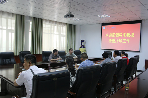 吴局长一行首先听取了我院相关部门负责人的工作汇报,同时就2015年和2016年全民技能振兴工程项目建设的相关工作、招生宣传、学生资助等问题进行了座谈;人社局鉴定中心的冯科长对我院2016年秋季申报免学费、助学金等情况逐班进行核对;最后,吴局长一行在刘涛副院长的陪同下,参观了图书馆、实训车间,详细了解我院专业项目建设落实情况,对我院的各项工作给予了肯定,同时对学院的发展和今后的工作提出了要求。刘院长代表学院对市人社局一直以来对我院工作的支持表示感谢,今后一定加强内涵建设,提高管理水平,争取各项工作再上新台阶!