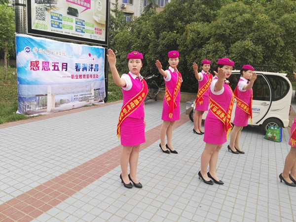5月13日下午,在团委和东方领航学院老师的带领下,领航学院学生在许昌市区帝豪广场举行了“感恩五月 春满许昌”的职业礼仪宣传活动,宣传活动在优美的音乐《爱在蓝天》中开始,同学们的精彩表演吸引了众多附近学校市三高学生以及群众观看。观众为我院学生的精彩表演给予阵阵掌声,不少三高学生对我院职业教育的专业设置及相关情况进行深入咨询。