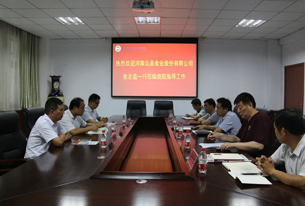 6月23日下午,河南众品食业有限公司总监张民权一行到我院洽谈校企合作事宜。学院冯朝印副院长热情接待张民权总监一行并召开座谈会。教务处、设备与实训管理中心、电气工程系、机电工程系等相关部门负责人参加会议。