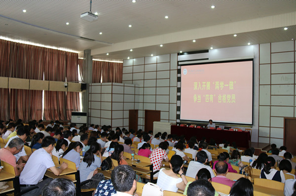6月29日,学院举办“两学一做”学习教育专题党课。学院党委书记杨鲁西以“深入开展‘两学一做’,争当‘四有’合格党员”为题,为全院党员和中层干部讲了一堂严肃生动的专题党课。党课由学院党委副书记、院长杨德岭主持。
