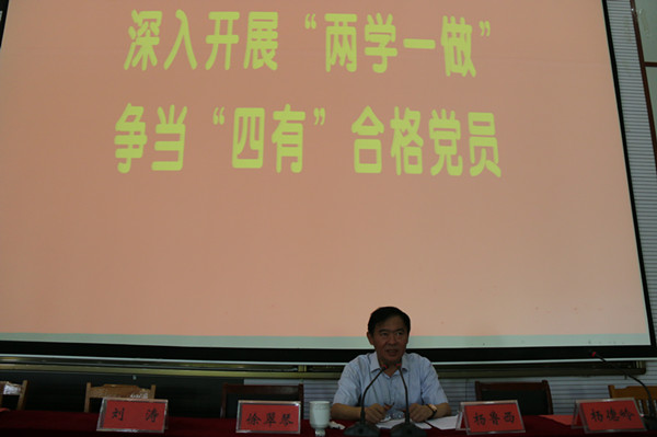 杨鲁西指出,中央部署“两学一做”学习教育,就是要推动党内教育从“关键少数”向广大党员拓展,从集中性教育向经常性教育延伸,坚定广大党员的马克思主义立场,保证全党始终在思想上政治上行动上同党中央保持高度一致,使我们党始终成为有理想、有信念的马克思主义政党。“两学一做”学习教育,基础在学,关键在做,目的是使广大党员做讲政治、有信念,讲规矩、有纪律,讲道德、有品行,讲奉献、有作为的合格党员。“四讲四有”体现了党章对共产党员的要求,是新形势下合格党员的重要标志和显著特征。