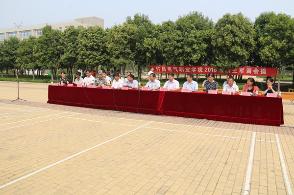 春华秋实,硕果满枝。9月14日上午,我院2016级新生军训会操比赛在学院广场隆重举行。党委书记杨鲁西, 院长杨德岭, 副院长刘涛、冯朝印, 工会主席张勇,党委委员、组宣部部长张明慧,承训部队带队教官赖亚飞,以及相关部门负责人出席了军训会操,本次会操比赛 由副院长刘涛主持。