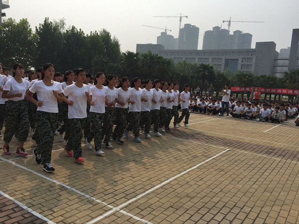 来自17个方队旳同学们就立正、稍息、报数、振三声等内容进行了汇报表演。他们飒爽的英姿、嘹亮的口号、整齐的步伐、严整的装容,充分展示了我院新生的精神风貌和军训成果,赢得了现场师生的阵阵掌声。
