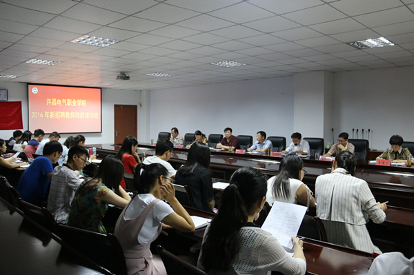 为使新入职教师适应新角色、更新教育观念,提升师德修养水平,增强课改意识,吸收班级管理经验,提高教育工作能力。9月23日、24日,许昌电气职业学院对2015年、2016年通过公开招聘新入职的20多名教师进行岗前培训。院党委书记杨鲁西同志,学院党委委员、副院长刘涛同志,学院党委委员、副院长冯朝印同志分别出席培训会并作辅导讲话。人事处、教务处、学生处、公共教学部、办公室、纪委监察审计处负责人和优秀班主任代表参加培训会。