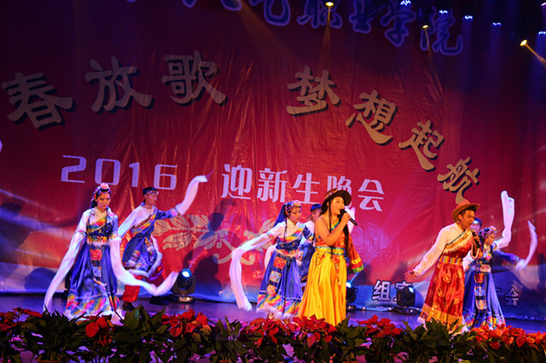 金秋送爽,花好月圆。为了迎接2016级新同学的到来,2016年9月28日和29日晚,我院在会议中心连续演出了两场2016迎新生文艺晚会。学院党委书记杨鲁西,院长杨德岭及全体党委委员出席了迎新晚会,学院中层干部、部分老师、2016级全体新同学以及2015级部分学生参加了晚会。