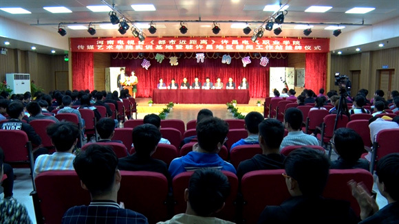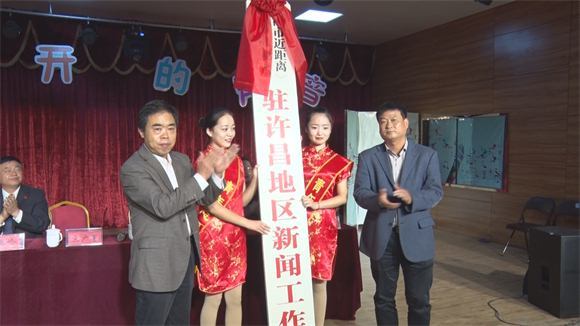 仪式上,许昌电气职业学院副院长冯朝印、河南日报驻许昌记者站副站长宋广军、河南电视台《都市近距离》总制片张利军、许昌电气职业学院工会主席张勇共同为河南电视台《都市近距离》许昌电气职业学院传媒艺术学院实训基地和驻许昌地区新闻工作站揭牌。