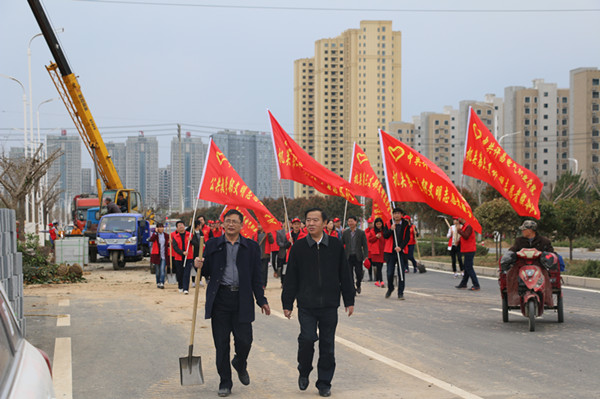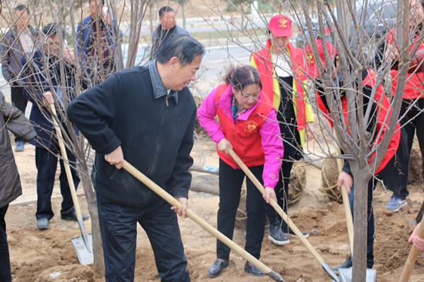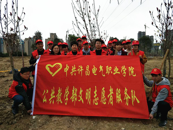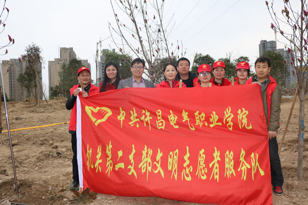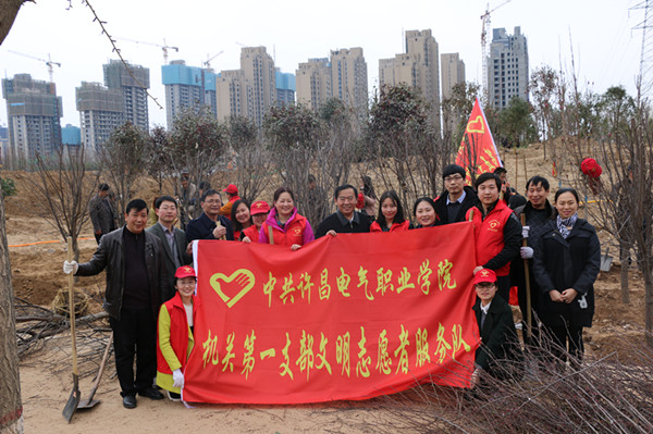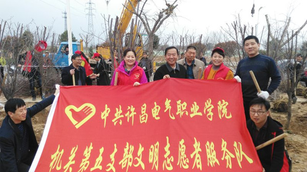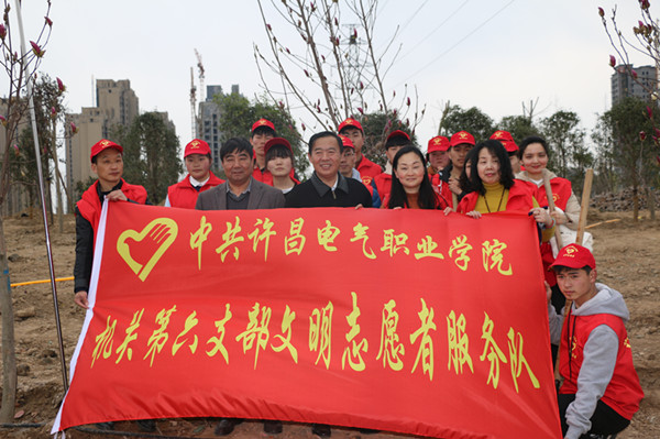 春回大地,万物复苏,随着气温的逐渐回升,也迎来了植树造林的好时节。为积极响应我市开展全民义务植树活动的倡议,3月15日下午,我院机关党总支、成人教育部党总支和公共教学部党总支全体党员志愿者及部分学生代表100余人,扛着志愿者服务队队旗,拿着铁锨等工具到许昌中轴景观项目开展义务植树活动。