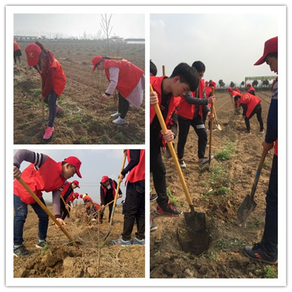 3月16日,天朗气清,惠风和畅,沐浴着春风,许昌电气职业学院的文明志愿者和青年志愿者协会的志愿者们在院团委和各系团总支的带领下,来到鸿安·芽芽寨进行义务植树活动。